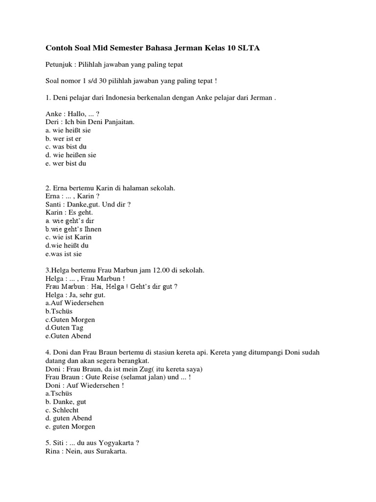 Contoh Soal Mid Semester Bahasa Jerman Kelas 10 Slta Part 1 Pdf