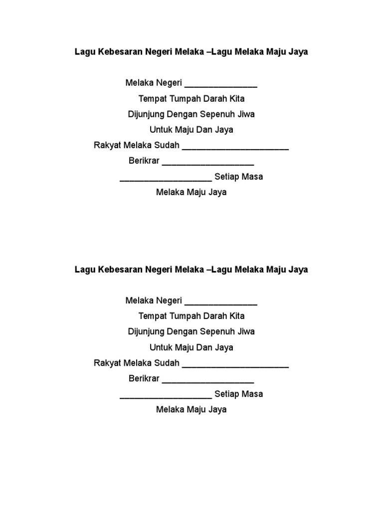 Lirik Lagu Kebesaran Negeri Melaka Lagu Melaka Maju Jaya Pdf